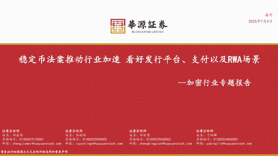【华源证券】【20250717】加密行业专题报告:稳定币法案推动行业加速,看好发行平台、支付以及RWA场景-39页