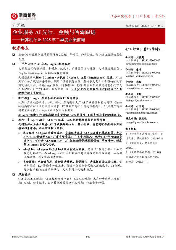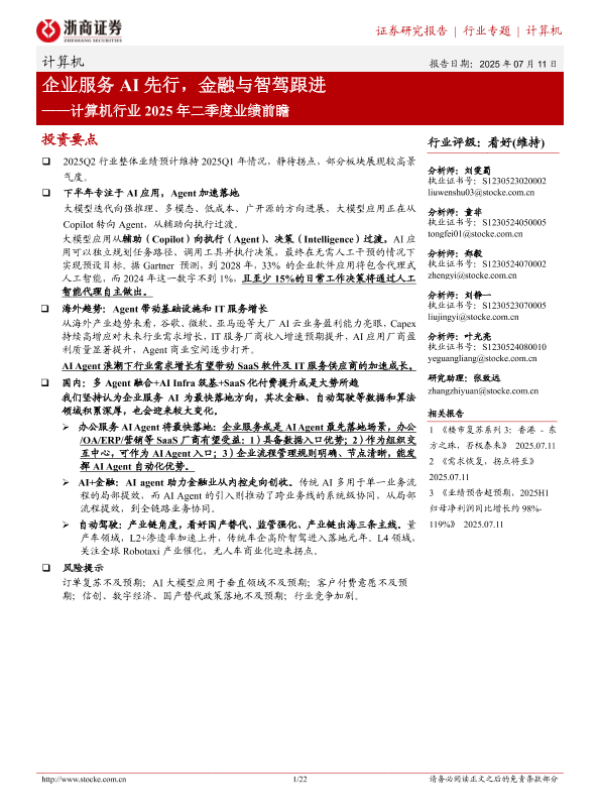 【浙商证券】【20250711】企业服务AI先行,金融与智驾跟进-22页