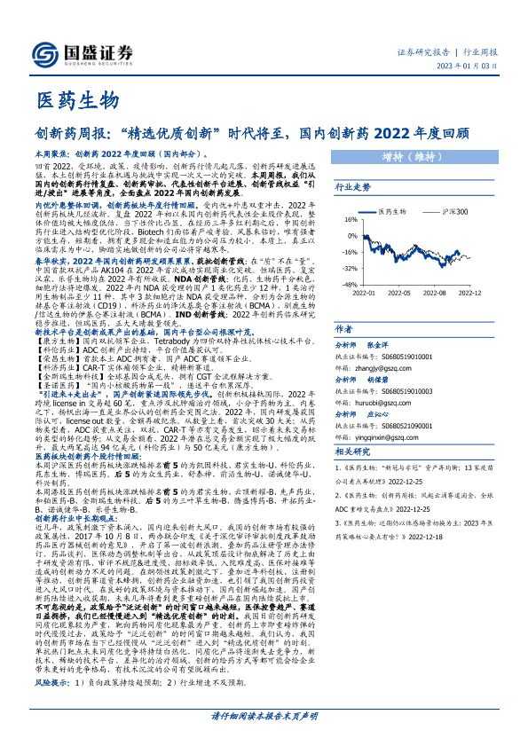 【国盛证券】【20230103】创新药周报:“精选优质创新”时代将至,国内创新药2022年度回顾-27页