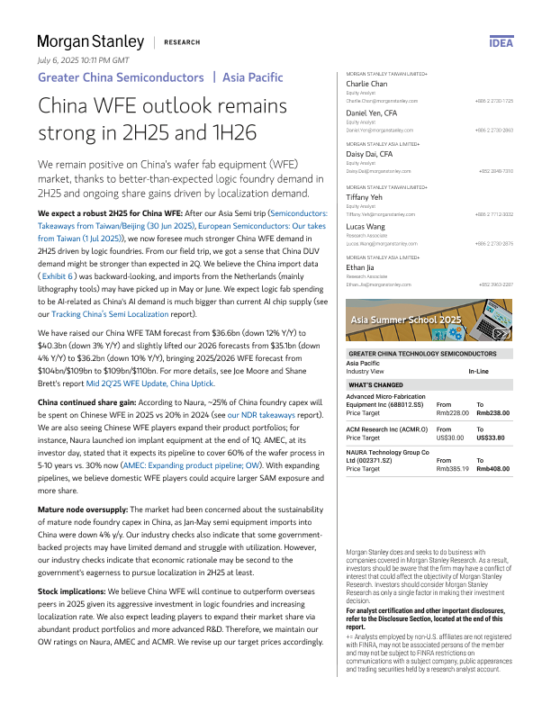 【Morgan Stanley】【20250712】中国半导体设备行业展望下半年逻辑晶圆厂需求超预期国产替代加速-33页