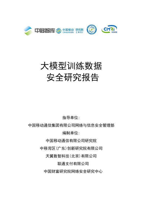 【中国移动通信集团有限公司网络与信息安全管理部】【20250713】大模型训练数据安全研究报告-35页