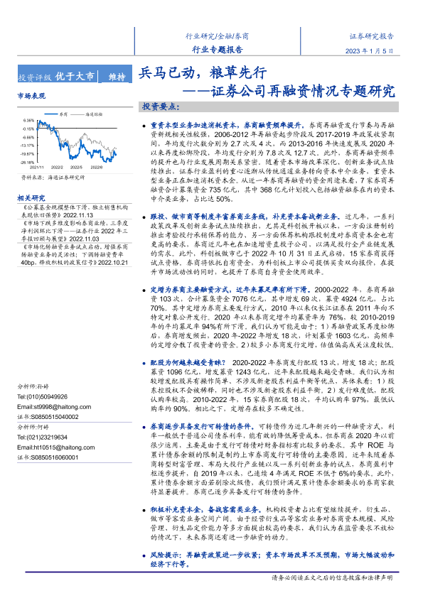 【海通证券】【20230105】券商行业证券公司再融资情况专题研究:兵马已动,粮草先行-22页