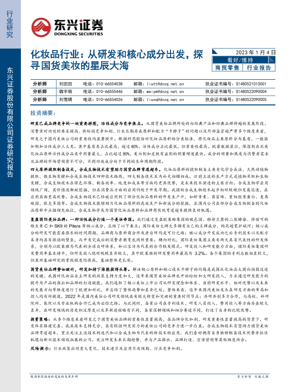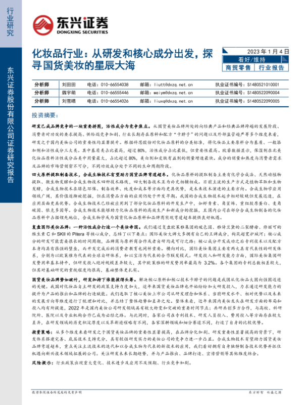 【东兴证券】【20230104】化妆品行业:从研发和核心成分出发,探寻国货美妆的星辰大海-48页