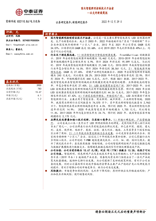 【中泰证券】【20221229】北交所新股简报:国内智能照明控制技术开拓者-20页