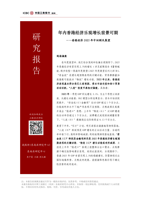 【中国工商银行(亚洲)东南亚研究中心】【20250720】年内香港经济乐观增长前景可期香港经济2025年中回顾及展望-13页