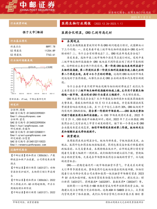 【中邮证券】【20230102】医药生物行业周报:医药分化明显,CRO已到布局之时-18页