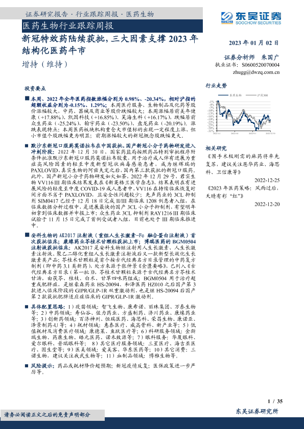 【东吴证券】【20220102】医药生物行业跟踪周报:新冠特效药陆续获批,三大因素支撑2023年结构化医药牛市-35页