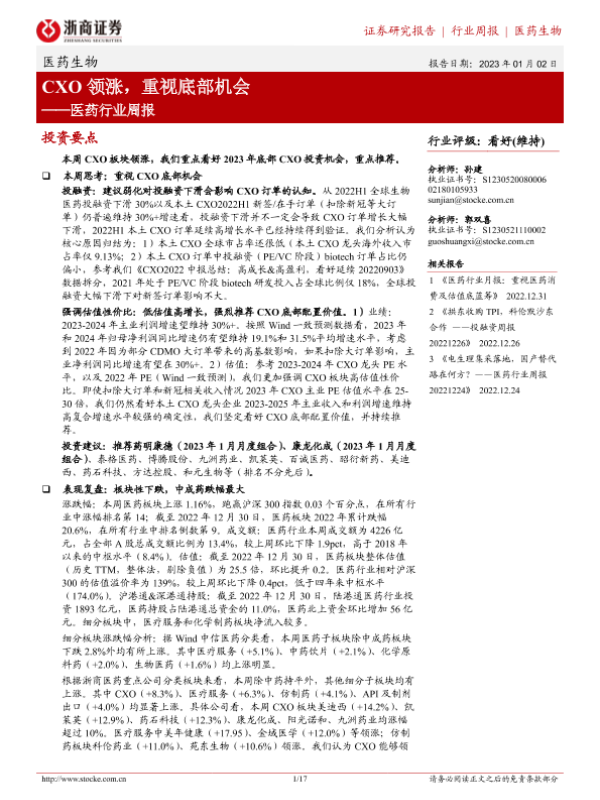 【浙商证券】【20230102】医药行业周报:CXO领涨,重视底部机会-17页