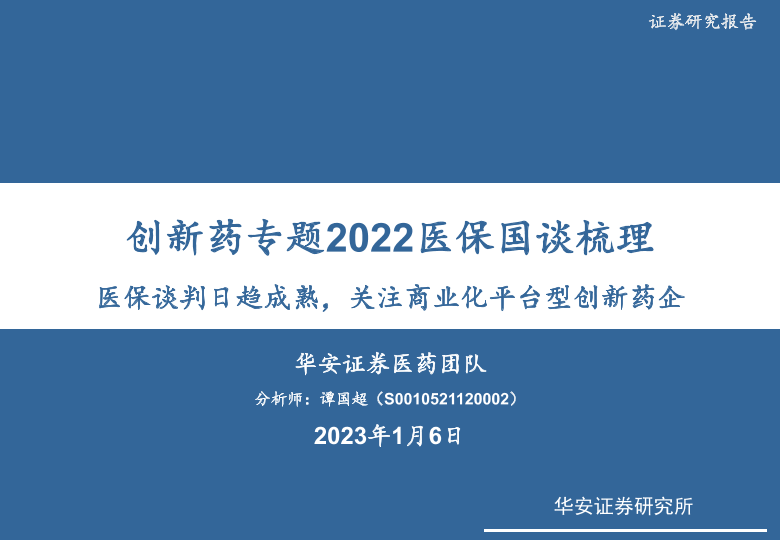 【华安证券】【20230106】医药行业创新药专题2022医保国谈梳理:医保谈判日趋成熟,关注商业化平台型创新药企-31页