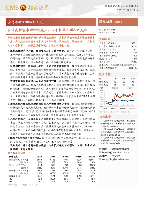 【海通证券】【20250630】全球高性能永磁材料龙头,人形机器人磁组件先驱-28页