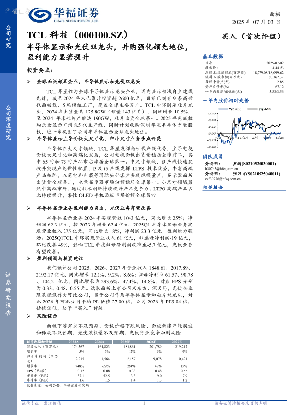 【华福证券】【20250703】TCL科技-半导体显示和光伏双龙头,并购强化领先地位,盈利能力显著提升-15页