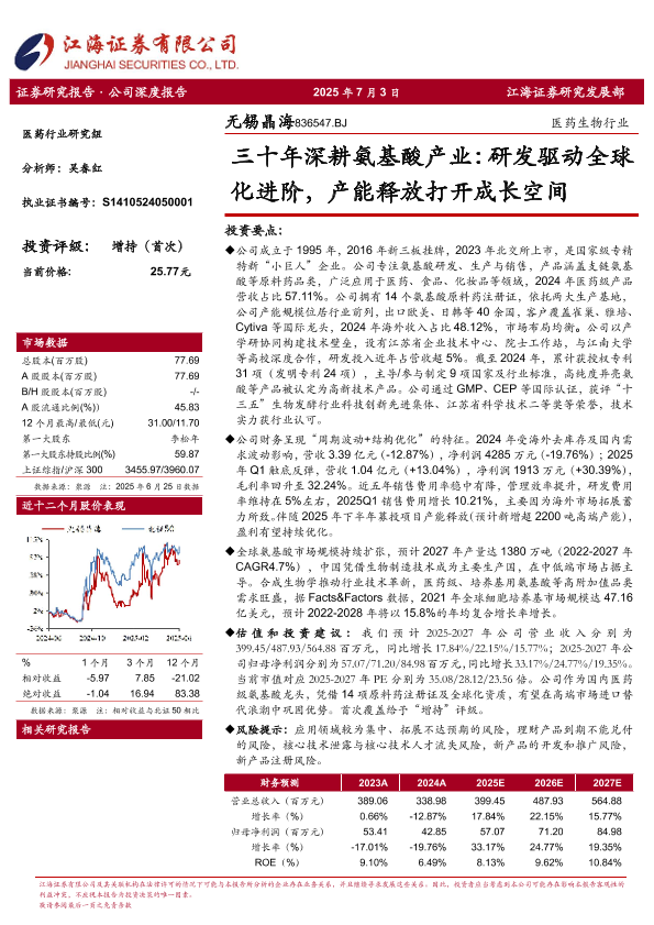 【江海证券】【20250703】三十年深耕氨基酸产业:研发驱动全球化进阶,产能释放打开成长空间-33页