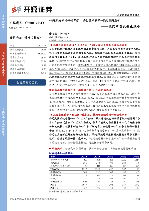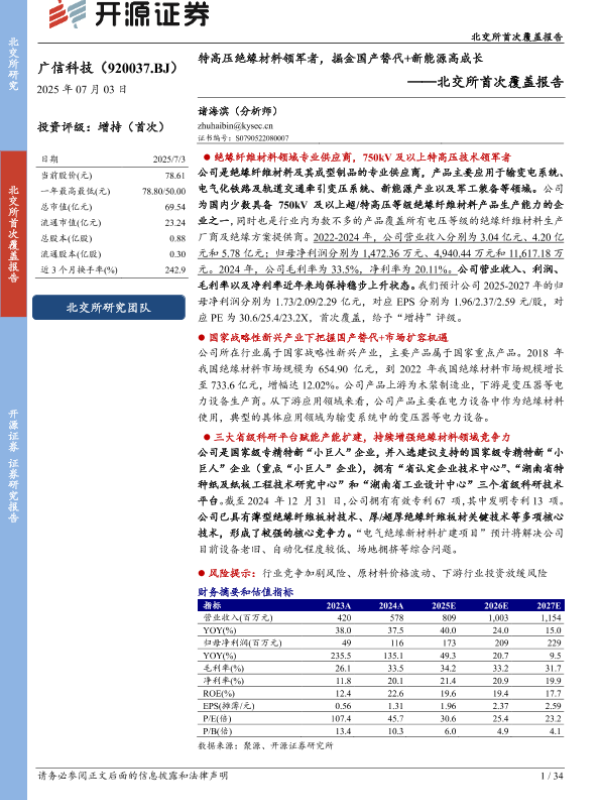 【开源证券】【20250703】广信科技:特高压绝缘材料领军者,掘金国产替代+新能源高成长-34页