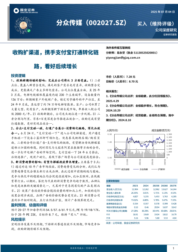 【国金证券】【20250704】分众传媒-收购扩渠道,携手支付宝打通转化链路,看好后续增长-18页