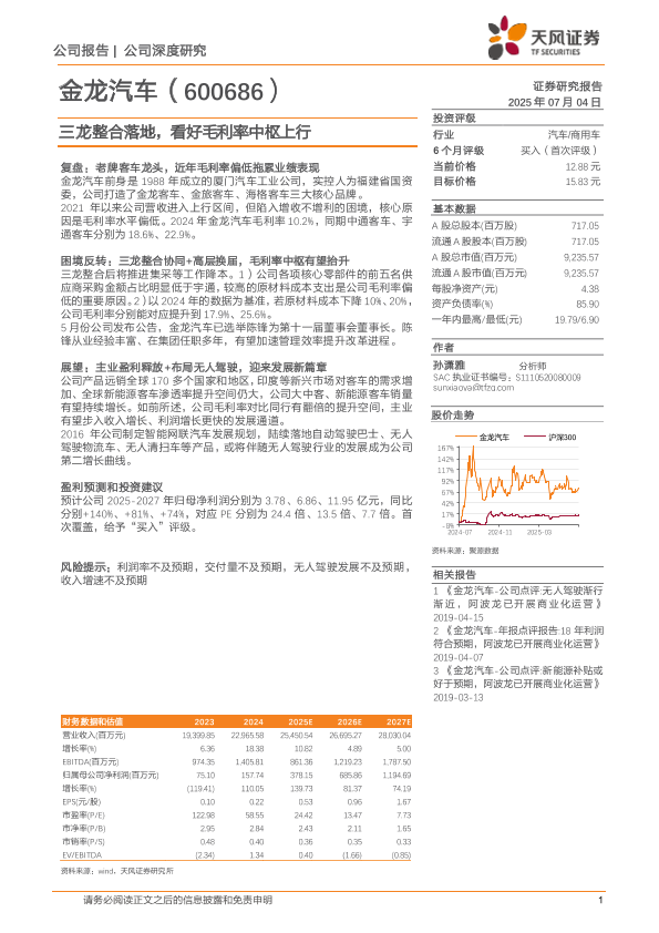 管理层变更 毛利率提升 无人驾驶 三龙整合 金龙汽车
