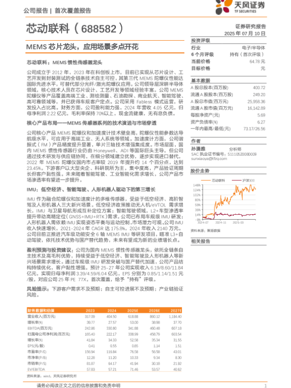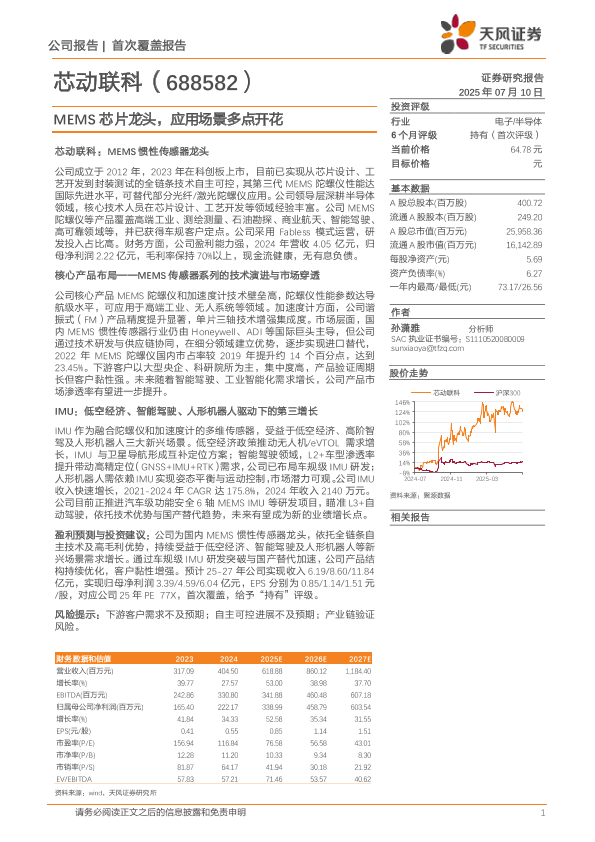 【天风证券】【20250710】芯动联科-688582.SH-MEMS芯片龙头,应用场景多点开花-22页