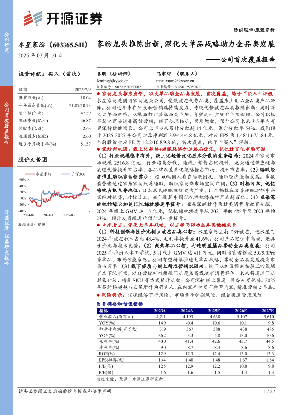 【开源证券】【20250710】水星家纺-603365.SH-公司首次覆盖报告:家纺龙头推陈出新,深化大单品战略助力全品类发展-27页