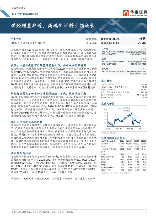 【华泰证券】【20250714】烯烃增量渐近,高端新材料引领成长-34页