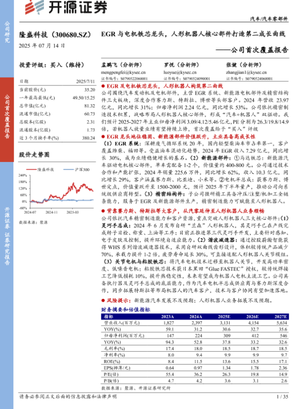 【开源证券】【20250714】隆盛科技首次覆盖报告:EGR与电机铁芯龙头,人形机器人核心部件打造第二成长曲线-35页