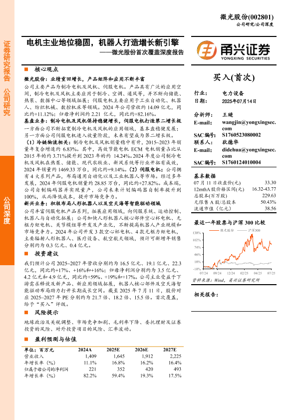 【甬兴证券】【20250714】微光股份首次覆盖深度报告:电机主业地位稳固,机器人打造增长新引擎-18页