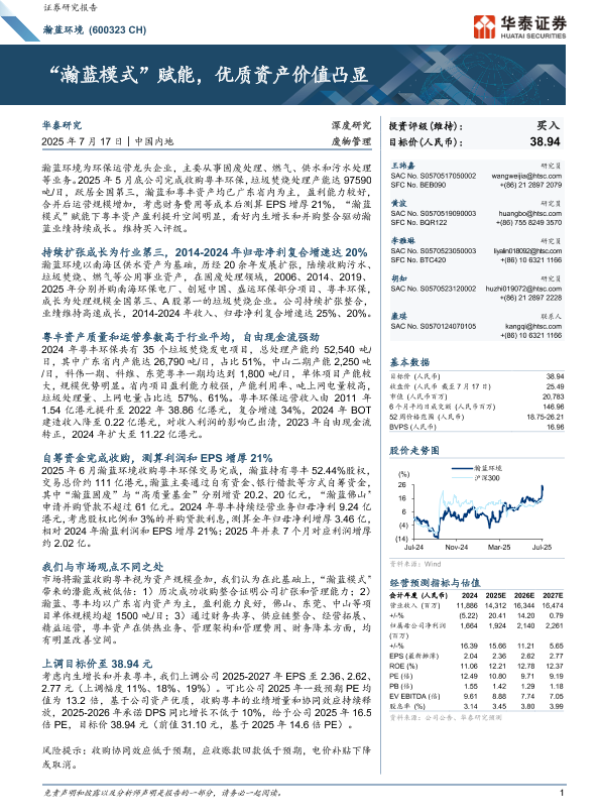 【华泰证券】【20250717】瀚蓝环境-“瀚蓝模式”赋能,优质资产价值凸显-30页