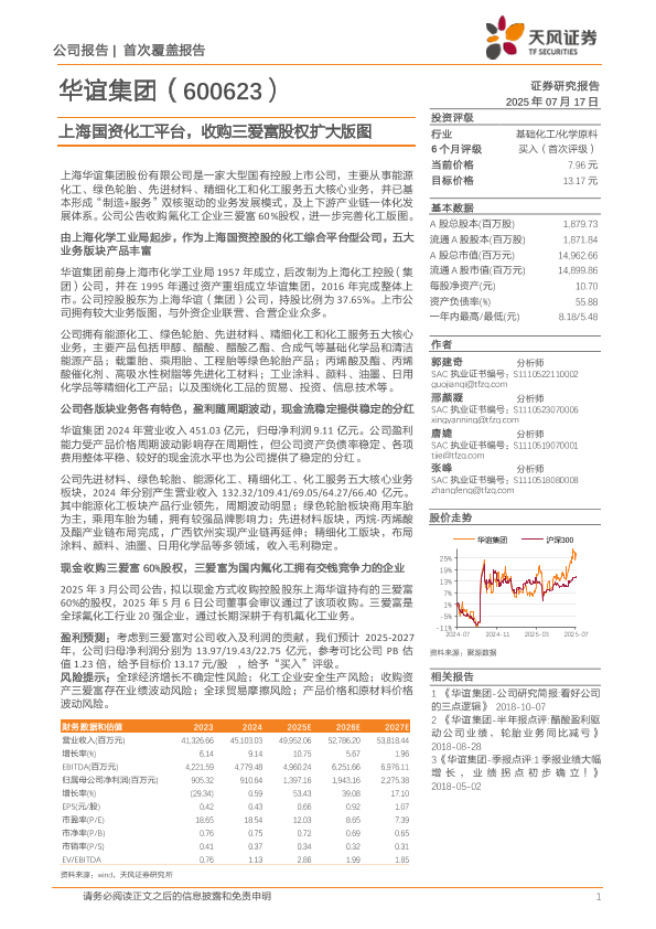 【天风证券】【20250717】华谊集团-上海国资化工平台,收购三爱富股权扩大版图-30页