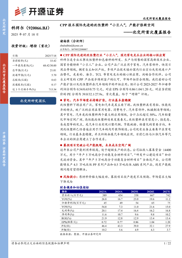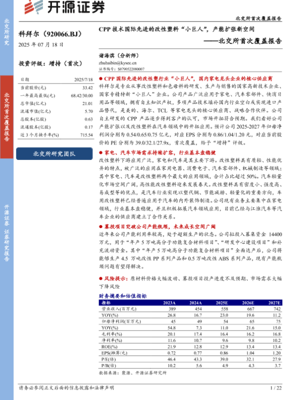 【开源证券】【20250718】CPP技术国际先进的改性塑料“小巨人”,产能扩张新空间-22页