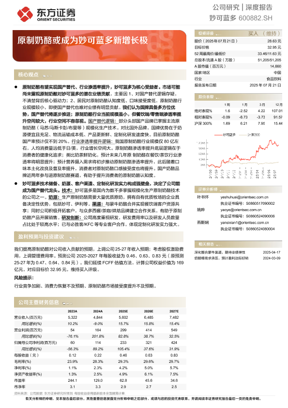 【东方证券】【20250721】妙可蓝多-600882.SH-原制奶酪或成为妙可蓝多新增长极-16页