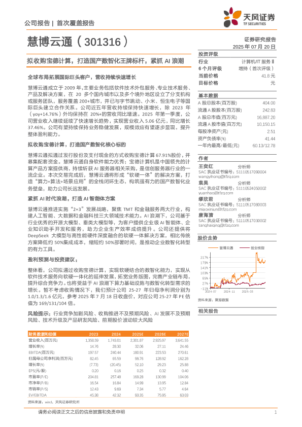 【天风证券】【20250720】慧博云通-301316.SZ-拟收购宝德计算,打造国产数智化王牌标杆,紧抓AI浪潮-20页