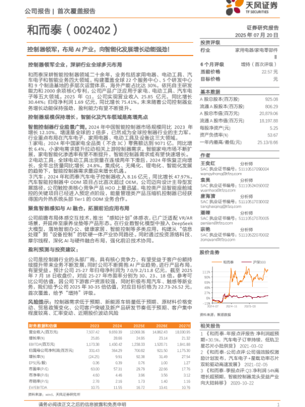 【天风证券】【20250720】和而泰-控制器领军,布局AI产业,向智能化发展增长动能强劲!-29页