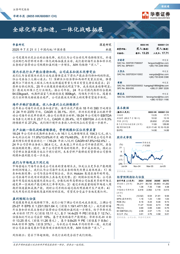 【华泰证券】【20250721】华新水泥-全球化布局加速,一体化战略拓展-36页