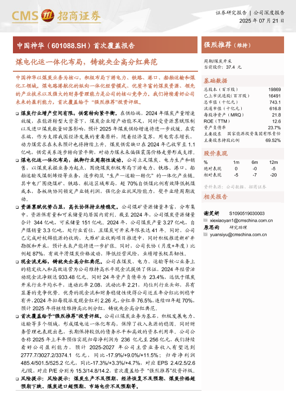 【海通证券】【20250721】中国神华-煤电化运一体化布局,铸就央企高分红典范-36页