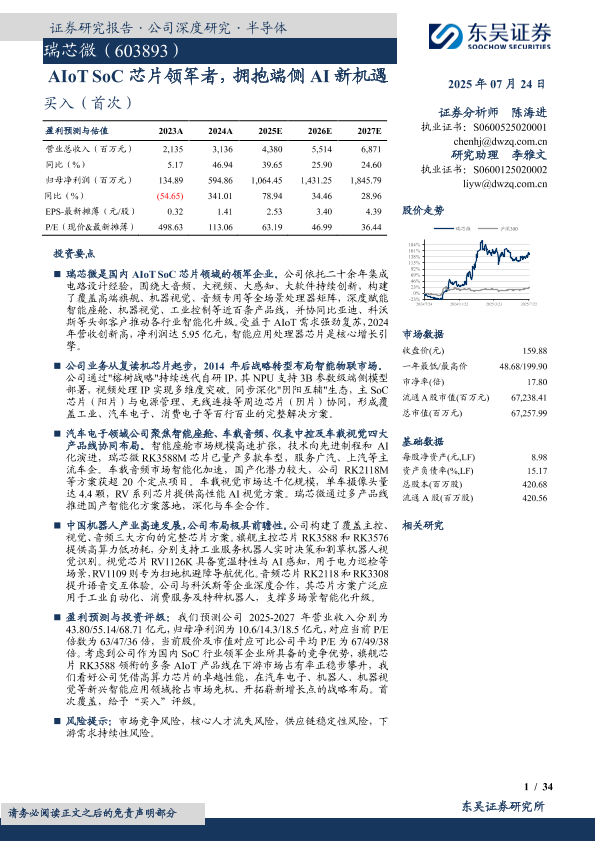 【东吴证券】【20250724】瑞芯微:AIoT SoC芯片领军者,拥抱端侧AI新机遇-34页