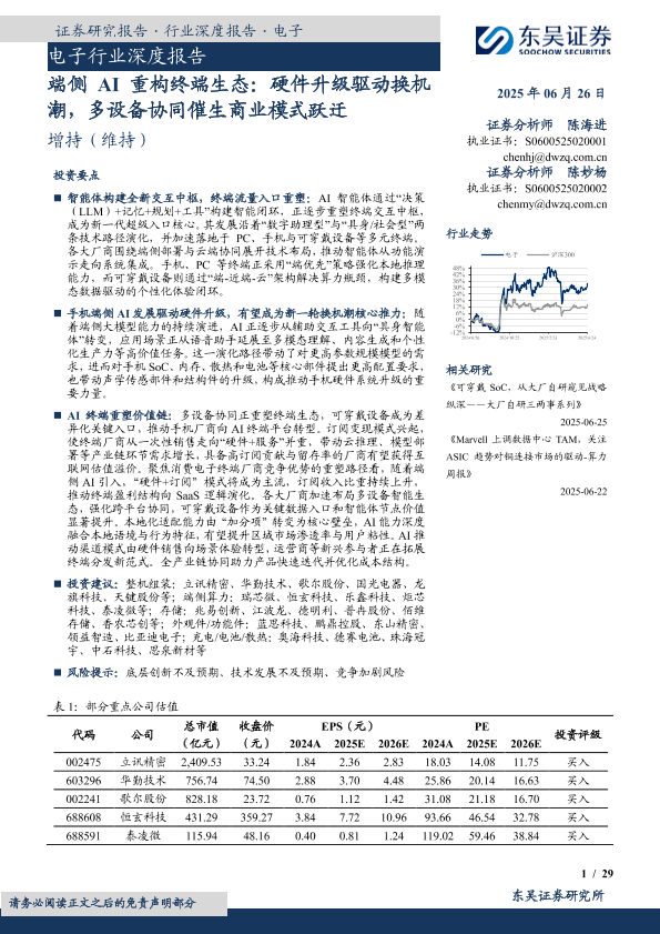 【东吴证券】【20250626】电子行业深度报告:端侧AI重构终端生态-29页