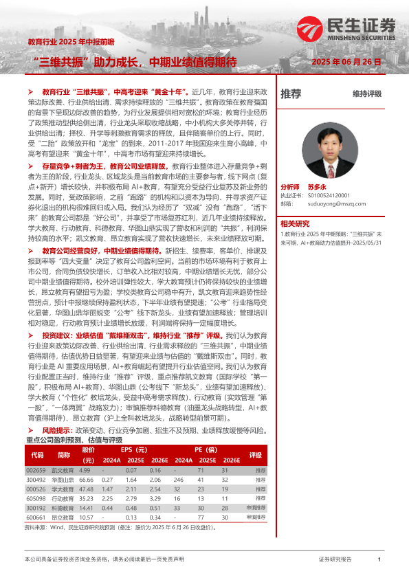 【民生证券】【20250626】教育行业2025年中报前瞻:“三维共振”助力成长,中期业绩值得期待-26页