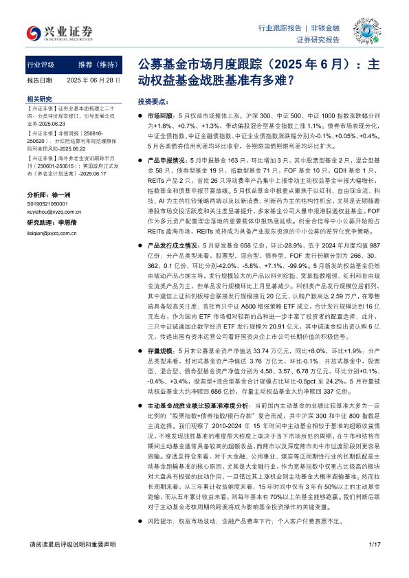 【兴业证券】【20250628】公募基金市场月度跟踪(2025年6月):主动权益基金战胜基准有多难?-17页