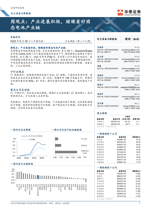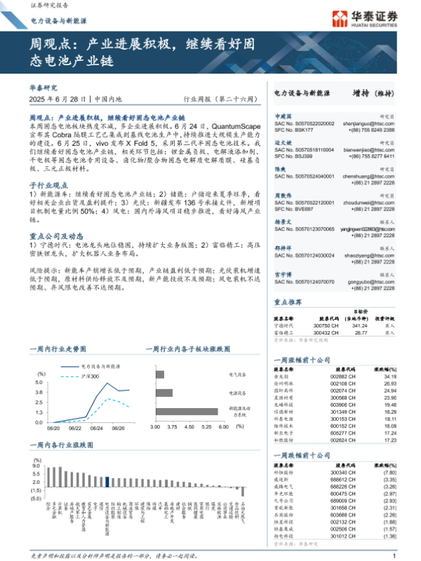 【华泰证券】【20250628】电力设备与新能源行业周观点:产业进展积极,继续看好固态电池产业链-14页
