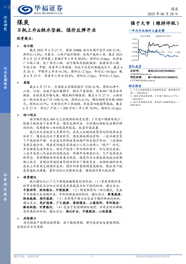 【华福证券】【20250628】煤炭:日耗上升&铁水坚挺,煤价反弹开启-22页