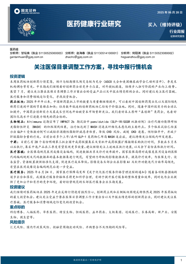 【国金证券】【20250628】医药健康行业研究:关注医保目录调整工作方案,寻找中报行情机会-17页