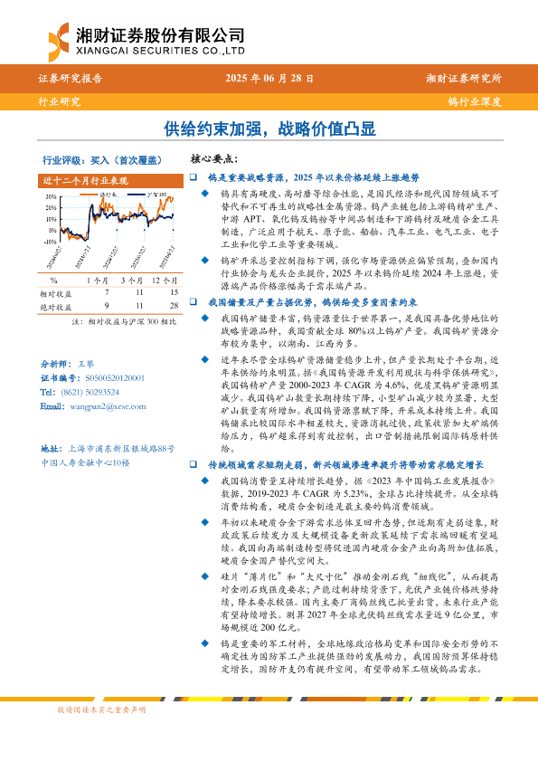 【湘财证券】【20250628】钨行业深度:供给约束加强,战略价值凸显-29页