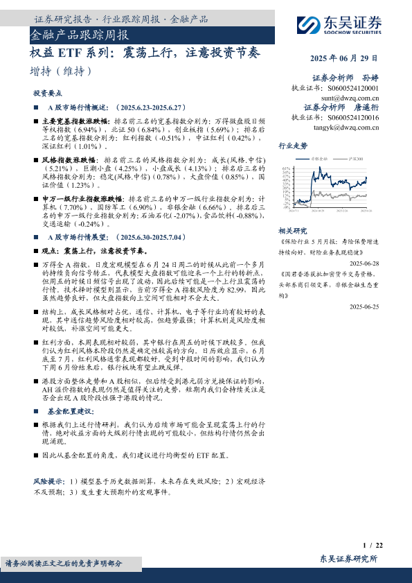 【东吴证券】【20250629】金融产品跟踪周报:权益ETF系列:震荡上行,注意投资节奏-22页