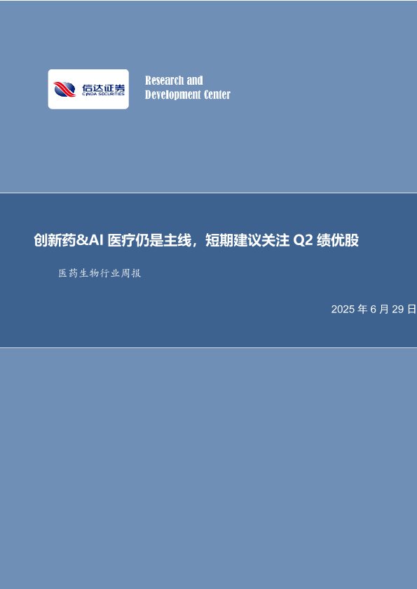 【信达证券】【20250629】医药生物行业周报:创新药&AI医疗仍是主线,短期建议关注Q2绩优股-14页