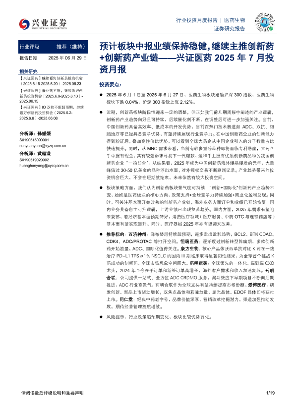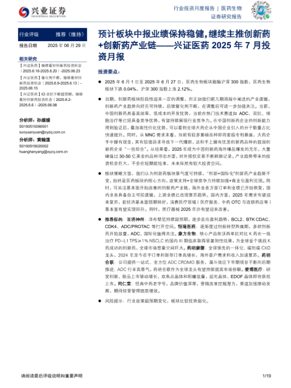 【兴业证券】【20250629】兴证医药2025年7月投资月报-19页