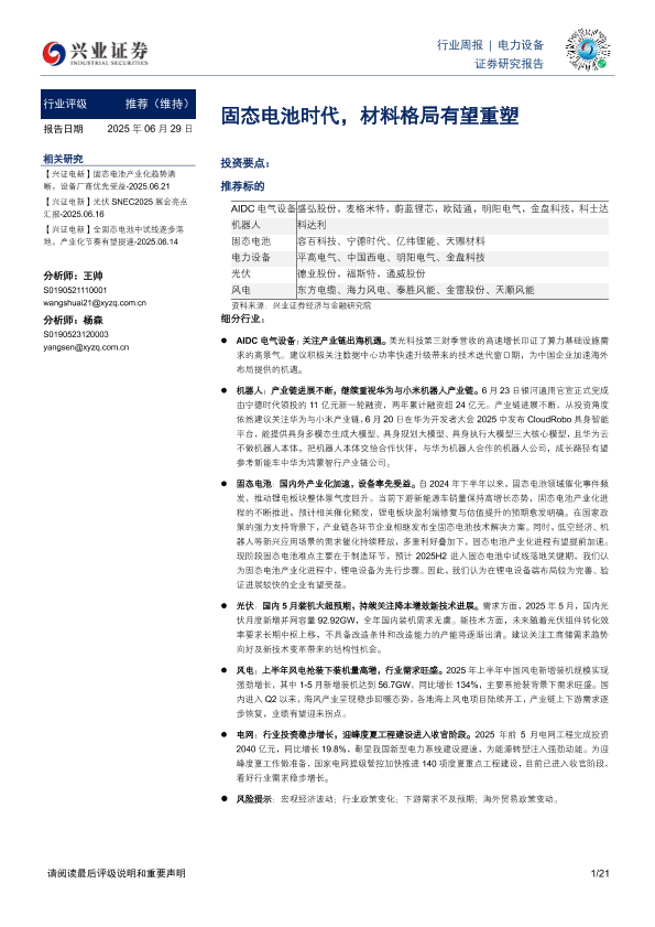 【兴业证券】【20250629】电力设备行业周报:固态电池时代,材料格局有望重塑-21页