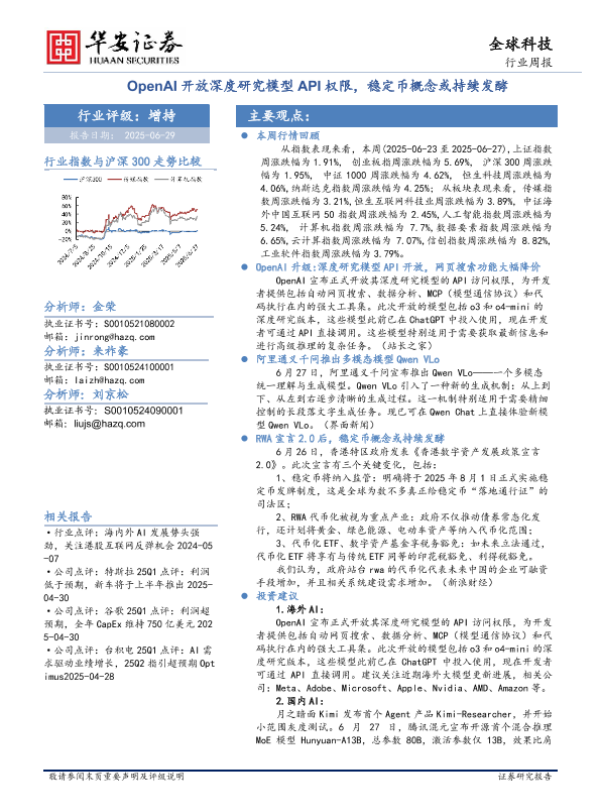 【华安证券】【20250629】全球科技行业周报:OpenAI开放深度研究模型API权限,稳定币概念或持续发酵-29页