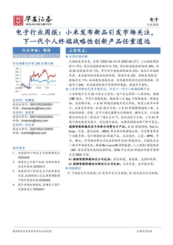 【华安证券】【20250629】电子行业周报:小米发布新品引发市场关注,下一代个人终端战略性创新产品任重道远-13页
