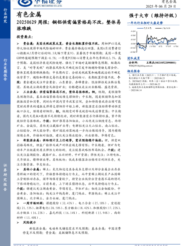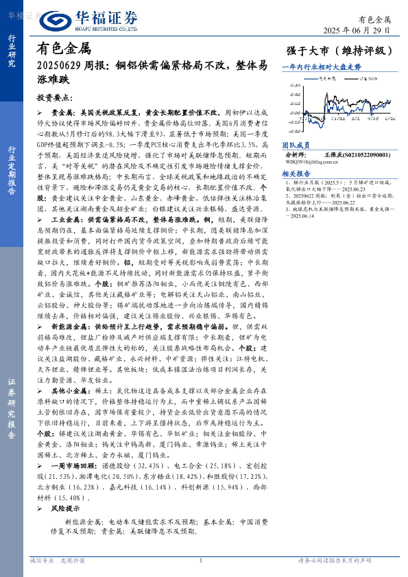 【华福证券】【20250629】20250629周报:铜铝供需偏紧格局不改,整体易涨难跌-13页
