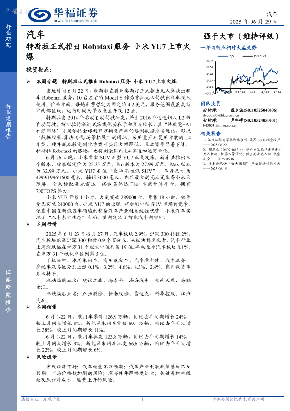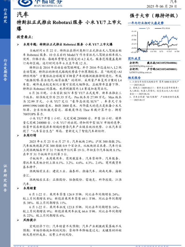 【华福证券】【20250629】汽车:特斯拉正式推出Robotaxi服务 小米YU7上市火爆-12页