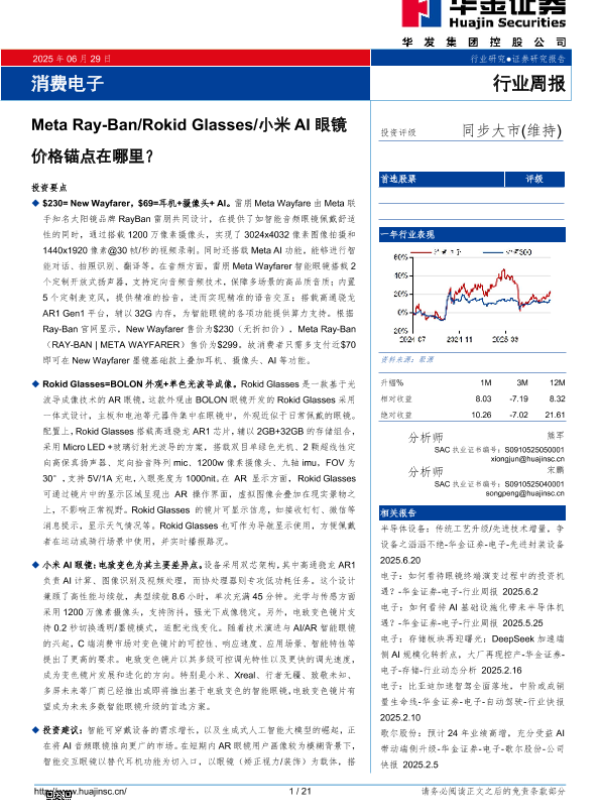 【华金证券】【20250629】消费电子行业周报:Meta Ray-Ban Rokid Glasses 小米AI眼镜价格锚点在哪里?-21页