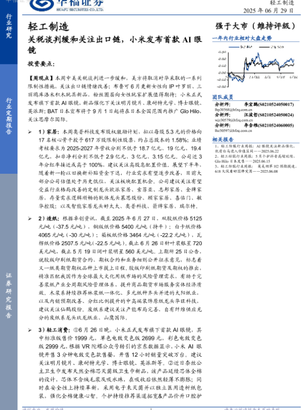 【华福证券】【20250629】轻工制造:关税谈判缓和关注出口链,小米发布首款AI眼镜-19页